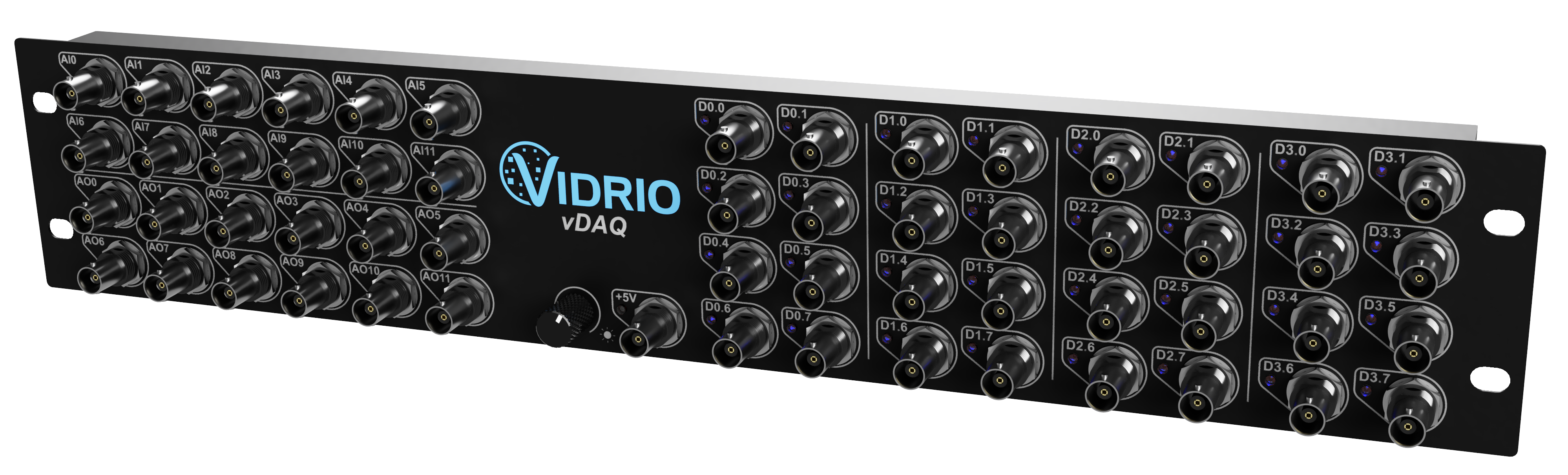 The 2U rackmountable vDAQ breakout shows the main functionality of the data acquisition system: